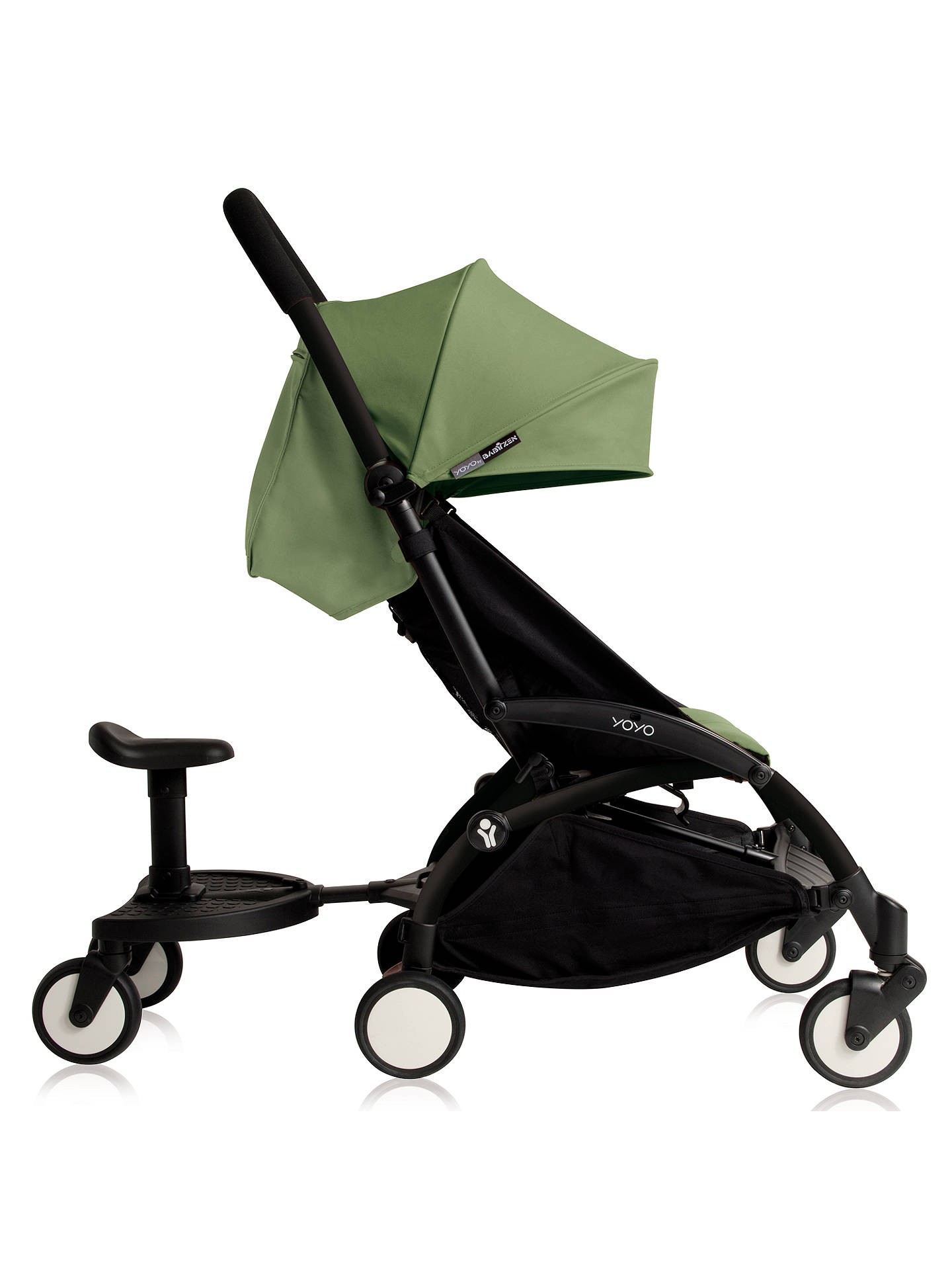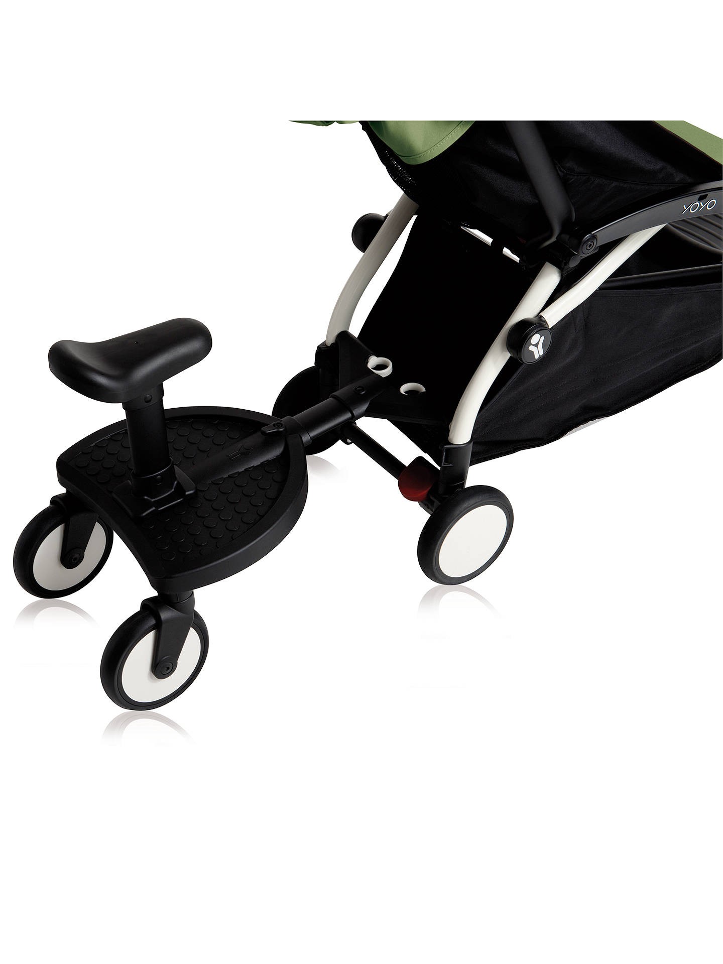 Dostawka pasuje do wszystkich modeli YOYO może być zainstalowana na wózku w łatwy i szybki sposób, jednym kliknięciem, dzięki wyjątkowemu systemowi Babyzen. Wyposażona w wyjmowane siodełko, które pozwala dzieciom stać lub siedzieć, podczas gdy ty idziesz dalej.