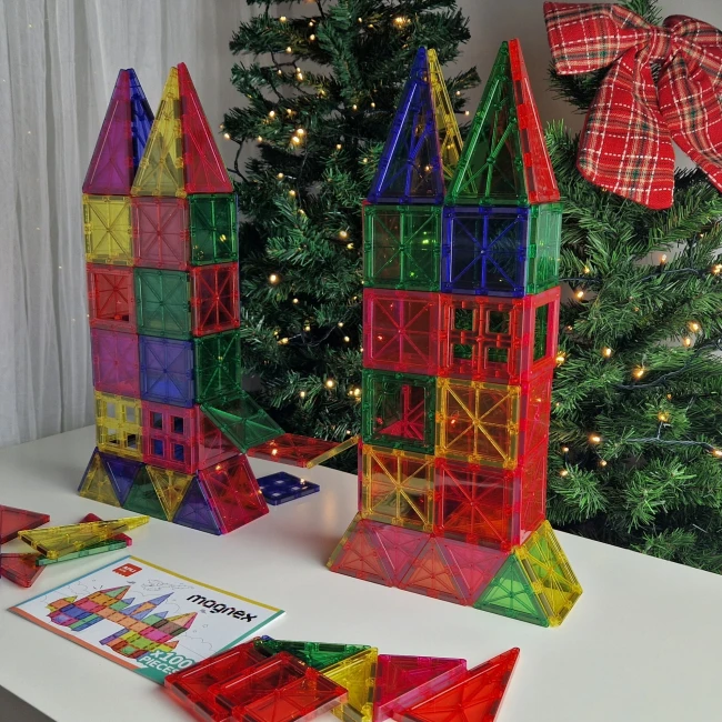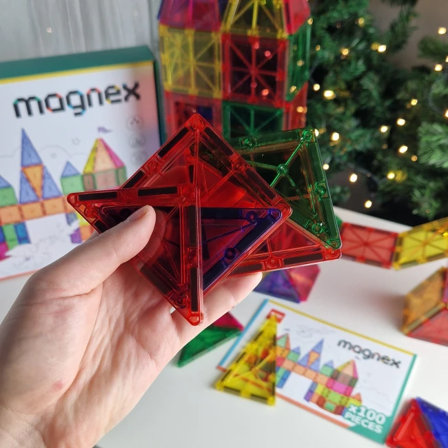 Zestaw zawiera 60 kolorowych, magnetycznych elementów w różnych kształtach i rozmiarach, które umożliwiają tworzenie trójwymiarowych struktur. Co istotne – wszystkie zestawy Magnax można ze sobą łączyć, co pozwala na stopniowe powiększanie kolekcji i budowanie coraz bardziej skomplikowanych modeli.