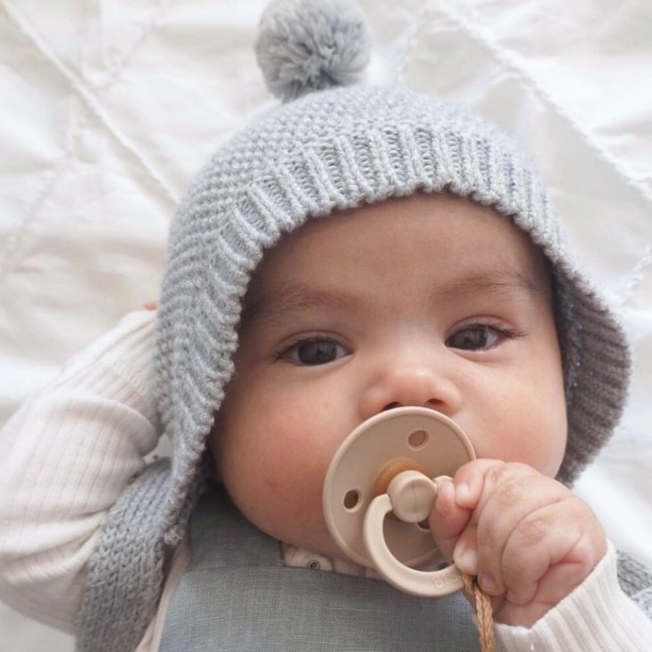Smoczek BIBS wykonany zostały z naturalnego, organicznego kauczuku bezpiecznego nawet dla najmłodszych dzieci. Charakteryzuje go wytrzymałość, miękkość i elastyczność co upodabnia odczucia ssącego go maluszka do ssania piersi mamy. Smoczek posiada okrągłą tarczę o specjalnie wyprofilowanym kształcie. W ten sposób nie dotyka ona ust i brody maluszka, co mogłoby powodować podrażnienie i problemy skórne. Tarcza wyposażona zostało dodatkowo w otwory ułatwiające wentylację i oddychanie.