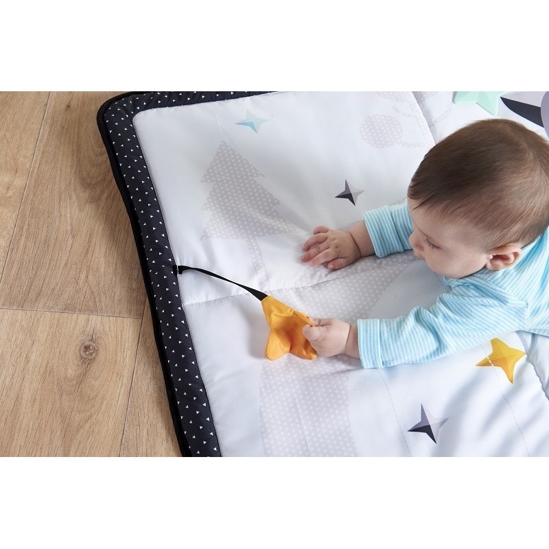 Mata interaktywna Gigant jest największą z mat Tiny Love. Duży rozmiar zapewni maluszkowi komfort i bezpieczeństwo. Mięciutka przestrzeń oferuje miejsce do motorycznych i sensorycznych doświadczeń dziecka leżącego na pleckach, brzuszku lub turlającego się.